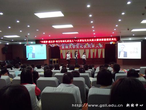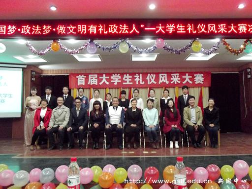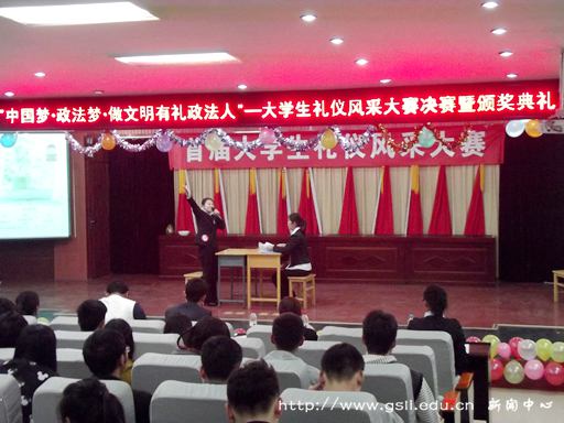 4月10日晚,由经济管理学院大学生社交礼仪协会主办的“中国梦,政法梦,做文明有礼政法人”——大学生礼仪风采大赛决赛暨颁奖仪式在学校明法讲堂举行。经济管理学院副院长姚建银、各院分团委书记及我校部分学生以及应邀前来的甘肃华商财富网络科技有限公司董事长张兰芳、白百合(北京)国际生物科技有限公司南娜代理商和晓丹、礼世界文化传播有限公司首席讲师张晓玉、北京兴晨网络电话公司兰州分公司总经理于建银等企业的嘉宾,共200余人参加了本次活动。
